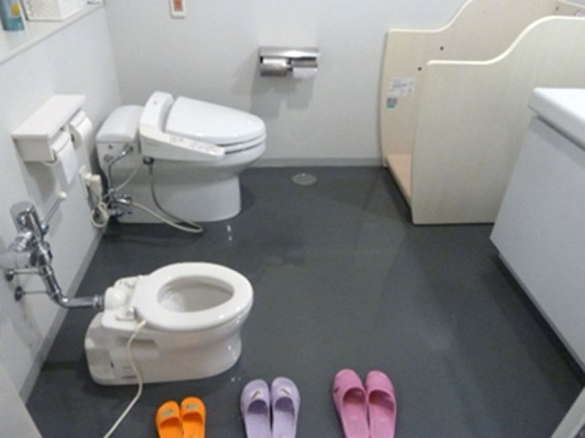 北側の駐車場に、身体障がい者等用青色駐車場が3台分あります。