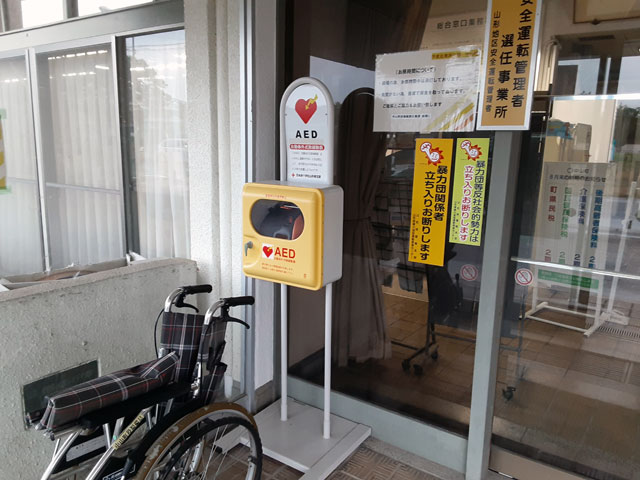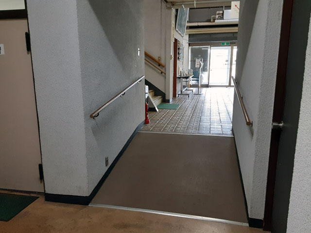 正面出入口前に、身体障がい者等用青色駐車場が1台分あります。