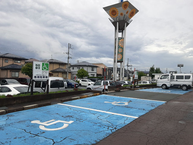 ひまわり温泉ゆ・ら・ら正面出入口前が無料駐車場になっています。