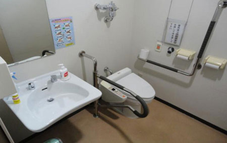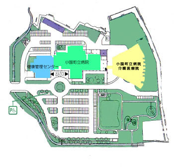 外来一般出入口の南側に、身体障がい者等用青色駐車場が2台分あります。